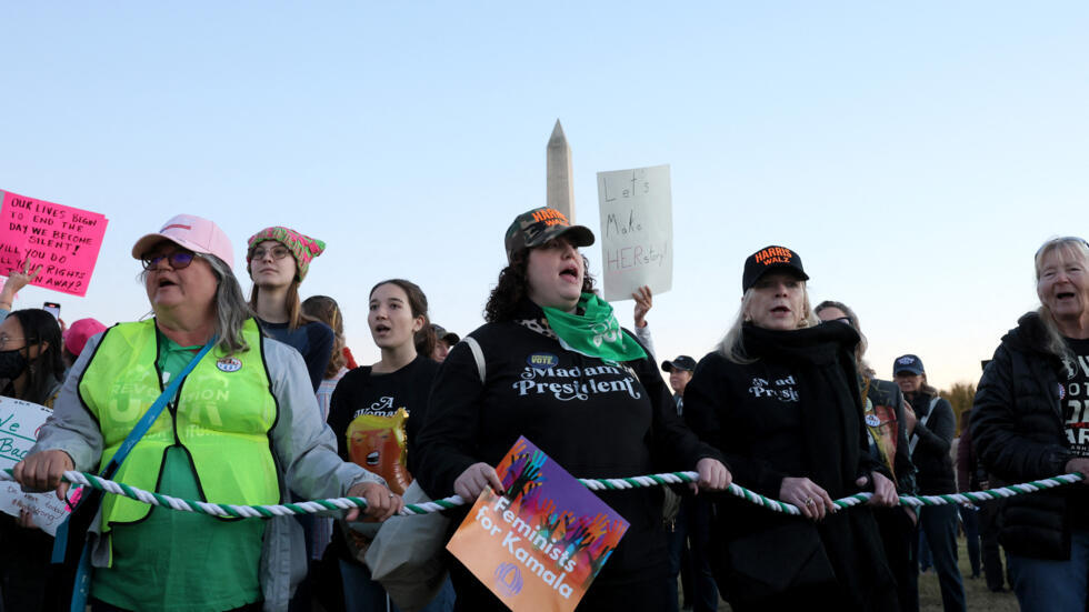 وجعلت المرشحة الديمقراطية من الدفاع عن الحق بالإجهاض ملفًا أساسيًا في حملتها الانتخابية، وهو الموضوع الذي تردد على ألسنة المتظاهرات المشاركات في هذه “المسيرة النسائية”.