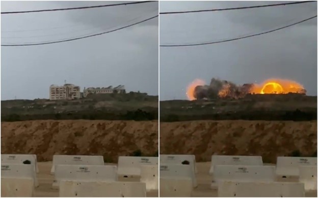 وأظهرت مشاهد قيام الجيش الإسرائيلي بتفجير مستشفى “الصداقة التركي” في محور نتساريم في قطاع غزة.