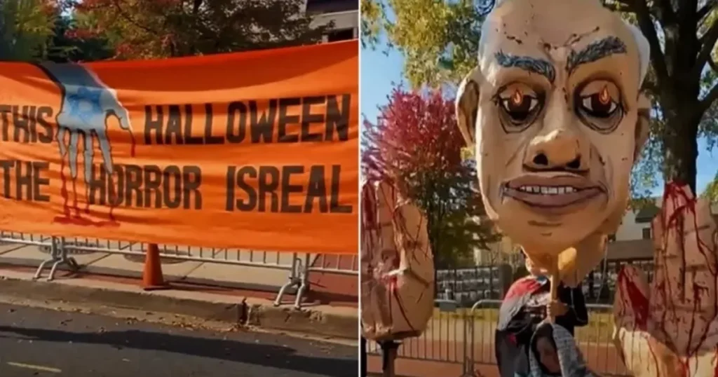 بعض سكان واشنطن لا يجمعون الحلوى من جيرانهم في عيد الهالوين، لكنهم يحتجون على الإجراءات الإسرائيلية في قطاع غزة، ويصفونها بـ "الرعب الحقيقي" و"الإبادة الجماعية".