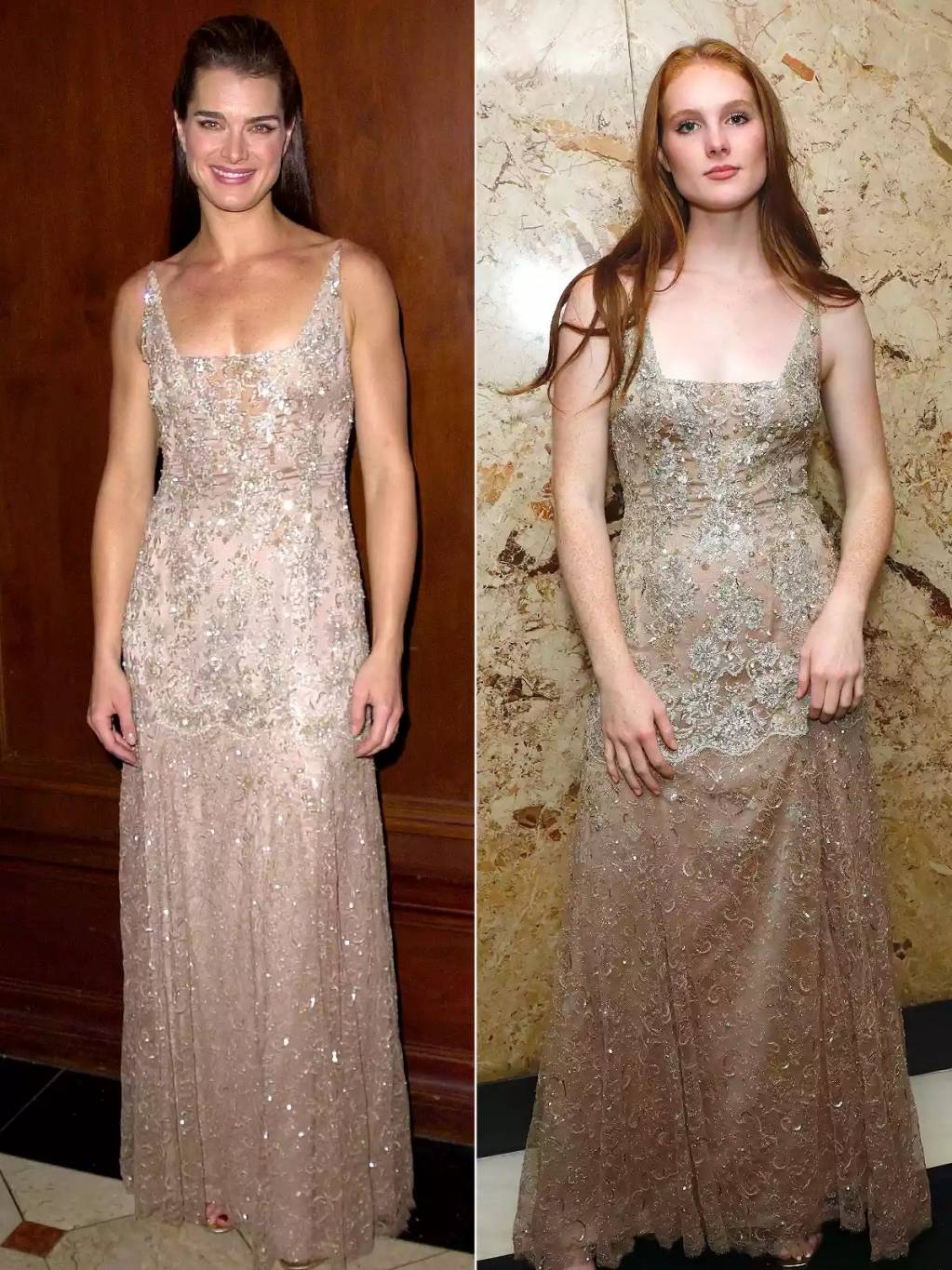 استعارت غرير هينشي فستان والدتها بروك شيلدز الكلاسيكي اللامع من Badgley Mischka بعد 22 عاماً من ارتدائه للمرة الأولى. كما ارتدت روان هينشي في عام 2021 فستاناً قرمزي اللون من دون حمّالات، كانت والدتها قد ظهرت فيه خلال حفل توزيع جوائز “غولدن غلوب” عام 1998.
