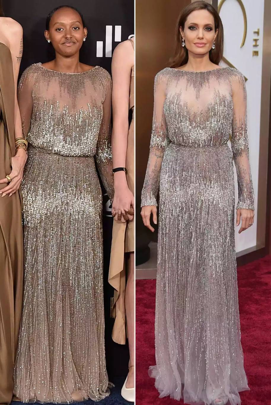 استعارت زاهارا البالغة من العمر 16 عاماً فستاناً من تصميم إيلي صعب من أرشيف أزياء والدتها أنجلينا جولي. كما ارتدت شيلوه، البالغة من العمر 15 عاماً، فستاناً من غابرييلا هيرست كانت قد ارتدته أنجلينا جولي في صيف عام 2021.