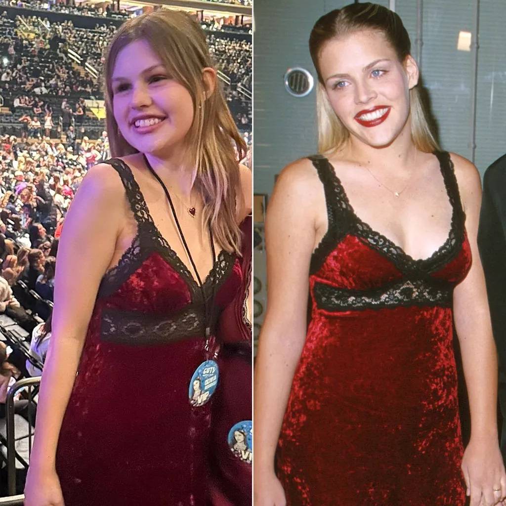 أطلّت بيردي ابنة بيزي فيليبس بفستان والدتها الذي يحمل توقيع “بيتسي جونسون” من عام 1999، خلال عرض “أوليفيا رودريغو”. الفستان المخملي الأحمر بأشرطة من الدانتيل الأسود وفُتحة شفافة عند البطن أبرز جمال ابنة الممثلة الأميركية.