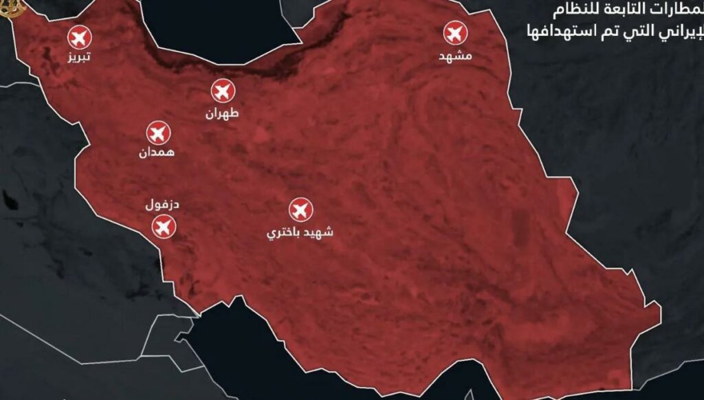 أعلن الجيش الإسرائيلي أنّه “هاجم ستة مطارات تابعة للنظام الإيراني في غرب وشرق ووسط إيران”.