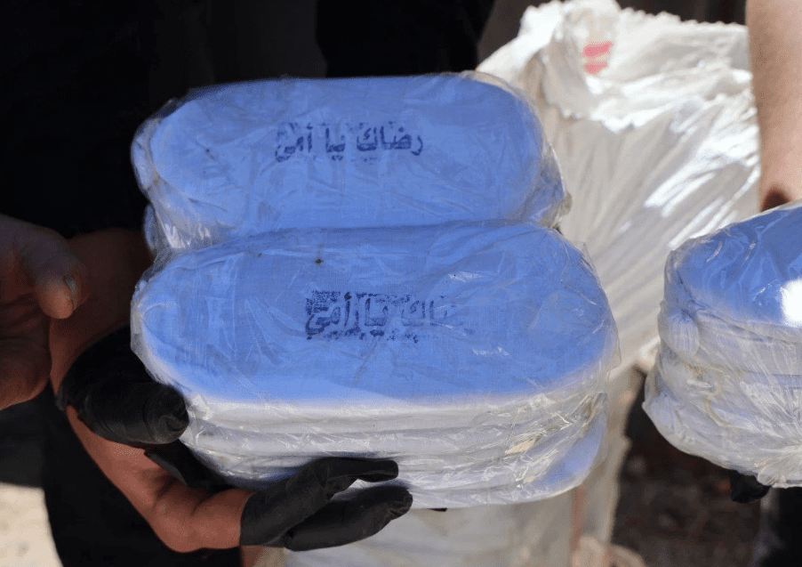أشعلت وزارة الداخلية السورية، السبت، تفاعلًا واسعًا على مواقع التواصل الاجتماعي بعد نشرها صورًا لشحنة مخدرات ضخمة تم ضبطها على الحدود بين لبنان وسوريا، حيث لفت نشطاء الأنظار إلى جملة مطبوعة على أكياس المخدرات تقول “رضاك يا أمي”.