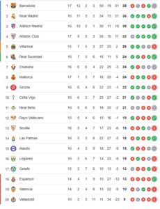 ورفع أتلتيكو الذي حقق فوزه الخامس توالياً في الدوري والتاسع في مختلف المسابقات، منها اثنان في دوري أبطال أوروبا على باريس سان جرمان الفرنسي 2-1 وسبارتا براغ التشيكي بسداسية نظيفة، رصيده إلى 35 نقطة في المركز الثالث، ليبقى قريبا من برشلونة المتصدر (38) وريال مدريد الثاني (36).