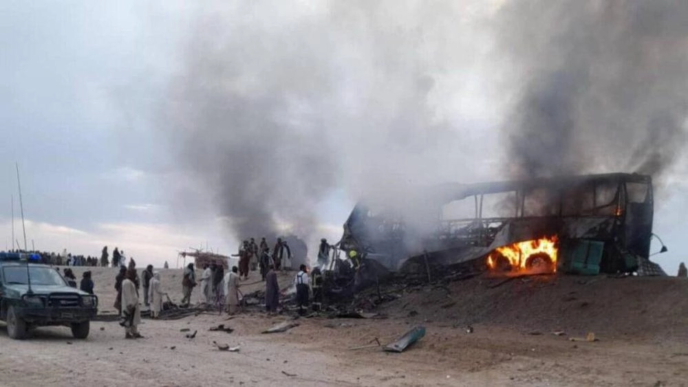 لقي ما لا يقل عن 21 شخصاً حتفهم، وأصيب 11 آخرون بجروح صباح الأحد في جنوب أفغانستان، بحادث تصادم بين شاحنة صهريج وحافلة ودراجة نارية، أدى إلى اشتعال النيران في هذه المركبات، حسبما أعلنت سلطات ولاية هلمند الإقليمية.