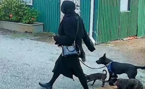 ونشرت الشرطة لقطات من كاميرات المراقبة لامرأة ترتدي ملابس سوداء من الرأس إلى القدمين وتسير عبر مدينة جنوب أستراليا مع ثلاثة كلاب، ولا يظهر وجهها على الإطلاق.