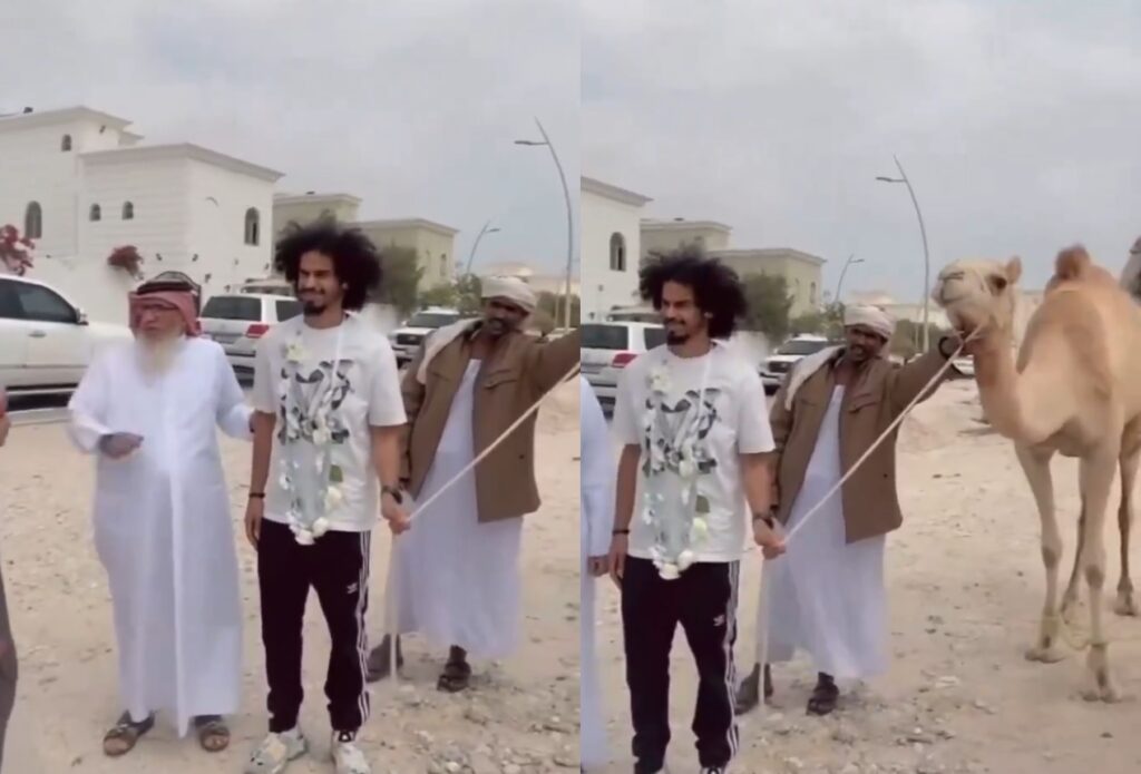 السياسي – أهدى الشيخ القطري “عبدالهادي بن جذنة” مواطنه ونجم الكرة القطرية أكرم عفيف، ناقة من سلالة “القحيدي” وهي من أفضل الهجن القطرية.