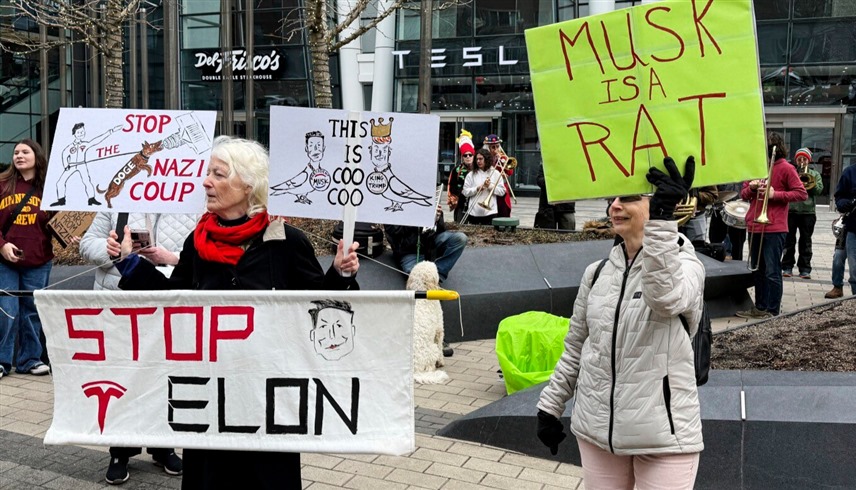 وقالت الشرطة إن مئات شاركوا في الاحتجاج الذي كان واحداً من موجة احتجاجات بشعار “إسقاط تسلا” في أنحاء البلاد ضد ماسك الذي يرأس إدارة الكفاءة الحكومية في إدارة ترامب.وتجمعت حشود أيضاً أمام معارض لشركة صناعة السيارات الكهربائية في غاكسونفيل بولاية فلوريدا، وتوسون بولاية أريزونا، ومدن أخرى، وأوقفوا حركة المرور وهتفوا ولوحوا بلافتات كُتب عليها “أحرقوا سيارة تسلا: أنقذوا الديمقراطية” و”لا للمستبدين في الولايات المتحدة”.