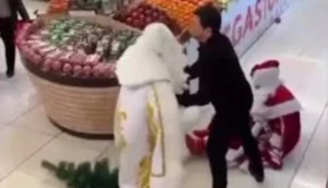 سانتا كلوز يفقد أعصابه..عراك بين اثنين بزي بابا نويل داخل متجر