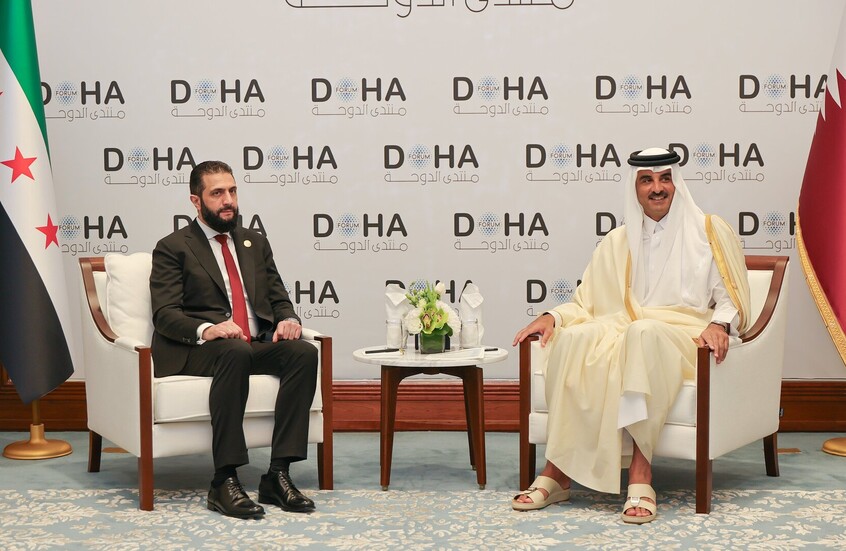 التقى السيد الرئيس أحمد الشرع صاحبَ السمو الشيخ تميم بن حمد آل ثاني، أمير دولة قطر، وذلك في اليوم الأول من أعمال منتدى الدوحة 2025 المنعقد في الدوحة، بحضور وزير الخارجية والمغتربين السيد أسعد الشيباني.#رئاسة_الجمهورية_العربية_السورية pic.twitter.com/OEWCeQq66W