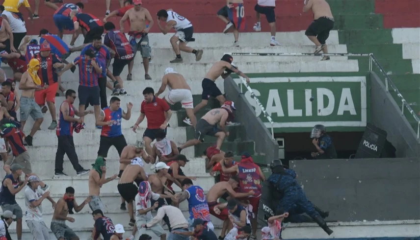 وقال أحد الأشخاص لصحيفة محلية إن “بعض المشجعين نزعوا درع مكافحة الشغب من أحد ضباط الشرطة و”استعرضوه كغنيمة” أمام الجماهير في أسونسيون.