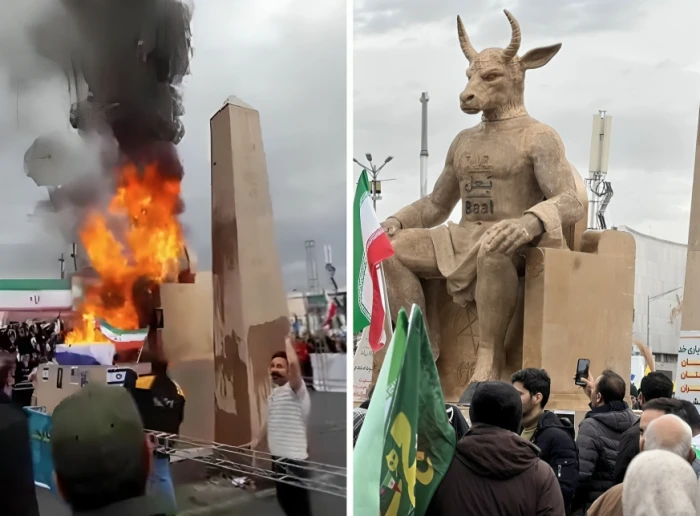السياسي – وثق فيديو متداول قيام متظاهرين إيرانيين بحرق دمية كُتب عليها اسم “بعل”، ووضعت عليها نجمة داود وعلم إسرائيل، وذلك خلال تظاهرة شهدت هتافات مناهضة لإسرائيل.