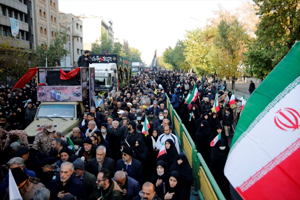 وشارك اللواء سيد مجيد موسوي، قائد قوة الجو-الفضاء في الحرس الثوري الإيراني، في مراسم تشييع جثامين المئة رفات التي ستدفن في طهران.