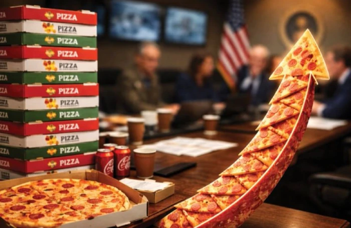 2. مؤشر “بيتزا البنتاغون”: سجّل ارتفاعًا قياسيًا بنسبة +1250% خلال 48 ساعة، مع وصول الطلبات المرتبطة بوزارة الدفاع إلى الحد الأعلى، ما يعكس اجتماعات عاجلة وتحركات مفاجئة.