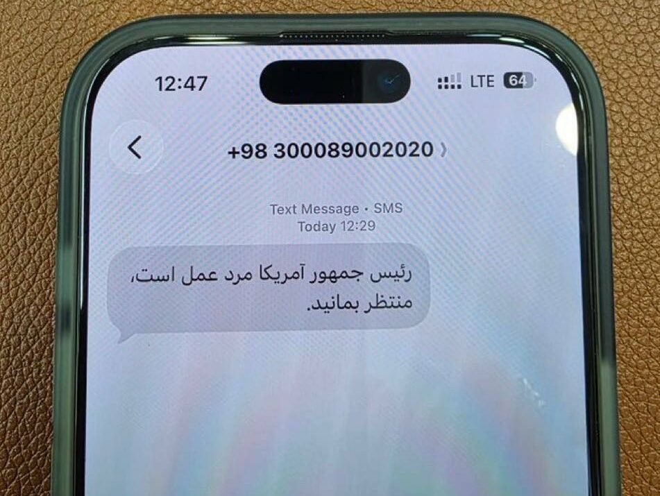 تلقّى مواطنون إيرانيون في مختلف أنحاء البلاد، يوم الإثنين، رسالة نصية غامضة وغير معروفة المصدر، تزامناً مع تصاعد التوتر بين واشنطن وطهران.