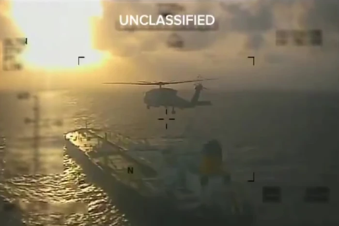 وأظهر مقطع فيديو مصادرة الجيش الأمريكي ناقلة النفط الخاضعة للعقوبات قبالة سواحل فنزويلا بالمياه الدولية.