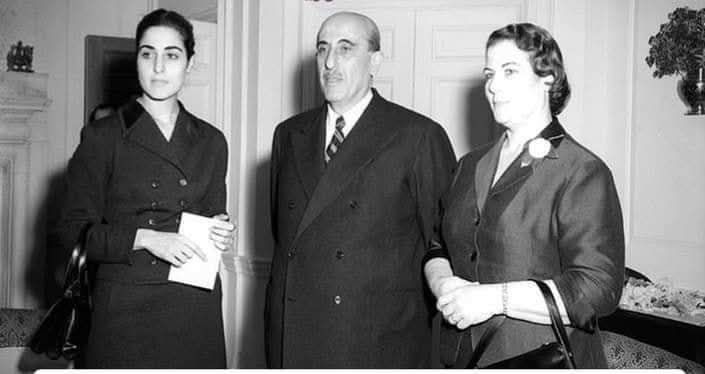 صورة ل الرئيس شكري القوتلي مع زوجته بهيرة سعيد الدالاتي وابنته الكبيرة هدى