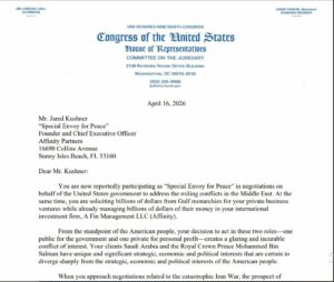 ويثير الكونغرس تساؤلات حول ما إذا كان كوشنر يمثل المصالح الأمريكية فعلاً، أم مصالح شركائه الماليين في الخليج، خاصة في قضايا استراتيجية مثل الحرب مع إيران أو إغلاق مضيق هرمز.