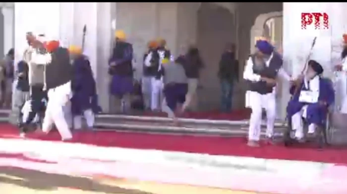 VIDEO | Punjab: A man opened fire at Shiromani Akali Dal leader Sukhbir Singh Badal at the entrance of Golden Temple, Amritsar. The person was overpowered by people present on the spot. More details are awaited.#PunjabNews #SukhbirSinghBadal