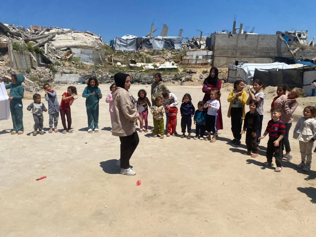 نفذت الهيئة الدولية لدعم حقوق الشعب الفلسطيني – حشد، بالشراكة مع الحملة الإيطالية “100×100 غزة”، لقاءً ترفيهيًا استهدف الأطفال في مخيم أهالي لبنان بمنطقة الصفطاوي شمال قطاع غزة، بمشاركة 30 طفلًا وطفلة، وذلك في إطار أنشطتها الهادفة إلى دعم الأطفال في مخيمات النزوح وتعزيز صمودهم النفسي والاجتماعي.