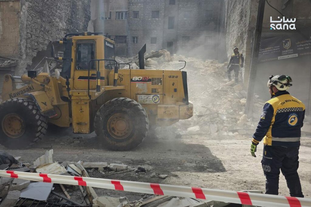 انهار بناء سكني مؤلف من خمسة طوابق في حي الأشرفية بمدينة حلب اليوم الجمعة، فيما تعمل فرق الدفاع المدني السوري على إنقاذ العالقين تحت الأنقاض.