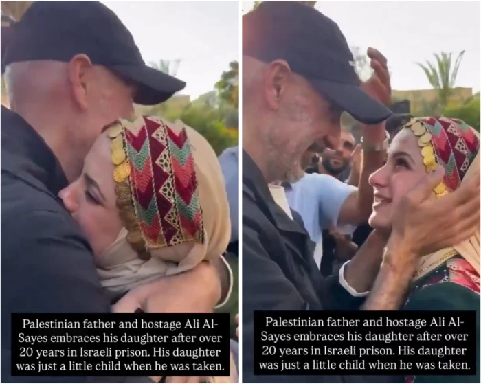السياسي – وثق فيديو لحظة لقاء أب فلسطيني مع ابنته لأول مرة منذ 20 عاما بعد أن تركها طفلة صغيرة واعتقلته إسرائيل.