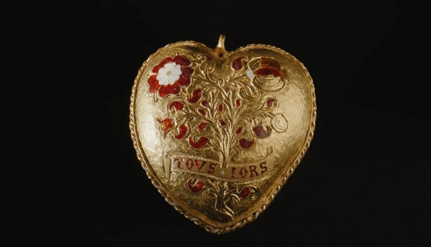 لم يستمر زواج هنري الثامن ملك إنجلترا وكاثرين وحدث الطلاق في عام 1533، لكن قلادة ذهبية يتدلى منها قلب مرتبطة بزواجهما لا تزال باقية وأصبحت متاحة الآن للعرض بشكل دائم في المتحف البريطاني.