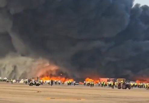 السياسي – اندلع حريق ضخم في مطار شاه جلال الدولي بالعاصمة البنجالية دكا، السبت، ما دفع السلطات إلى إيقاف جميع الرحلات الجوية.