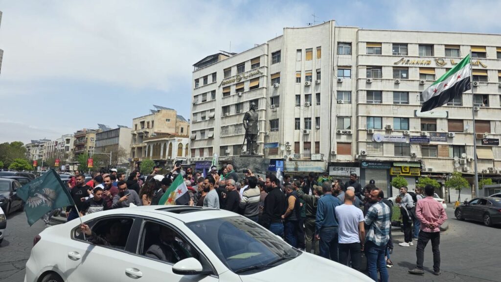 تجمع عشرات المحتجين في ساحة “يوسف العظمة” بدمشق، استجابة لدعوة اعتصام نُظمت تحت شعار “القانون والكرامة”، للمطالبة بتحسين الأوضاع الاجتماعية والاقتصادية في ظل ارتفاع تكاليف المعيشة.