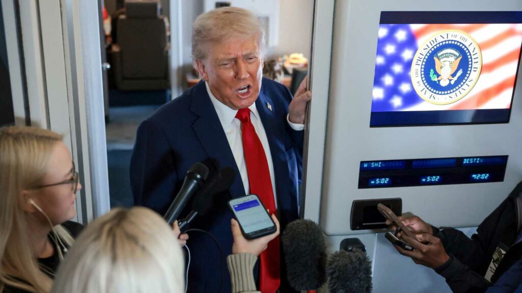 وتهرَّب “ترامب” خلال حديث مع الصحفيين في طريق عودته من شرم الشيخ إلى واشنطن، من سؤال بشأن حل الدولتين.