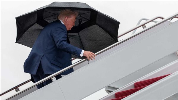 لفت الرئيس الأمريكي دونالد ترامب، الأحد، الأنظار إليه خلال صعوده إلى طائرته الرئاسية بشكل غير اعتيادي وسط إجراءات أمنية مشددة.