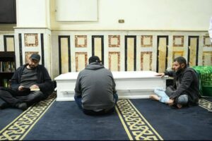 ولوحظ غياب انبها الفنان احمد الفيشاوي الذي برر له نقيب الفنانين وجوده في الولايات المتحدة الاميركية وقال انه سيركب اول طيارة وجاي بينما سيحضر نجلها الثاني عمر الذي بدت عليه علامات الحزن من خلال ملازمته لنعش والدته