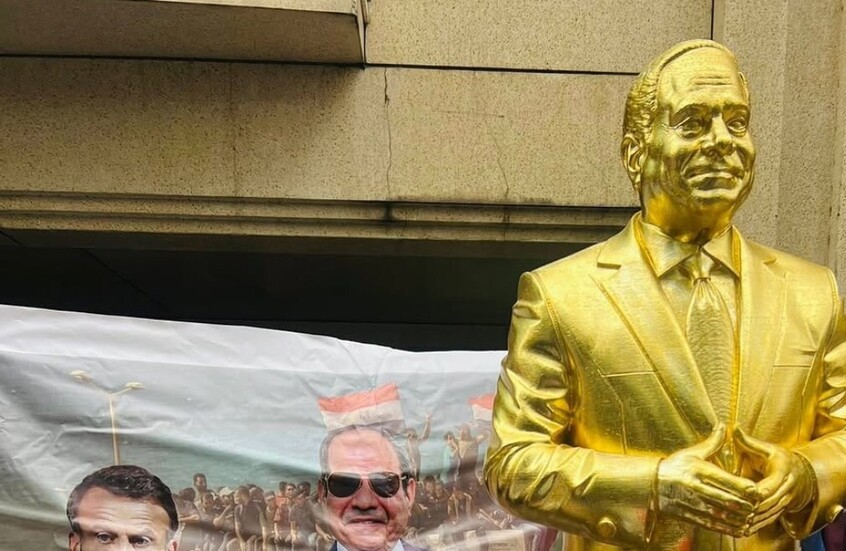 وبخصوص التمثال الذهبي، أوضح مخلوف أن “المشهد تجاوز حدود الاستقبال التقليدي برفع الصور، ليصبح عملا فنيا رمزيا يجسد الامتنان والاعتراف بالدور الاستثنائي للرئيس السيسي”.