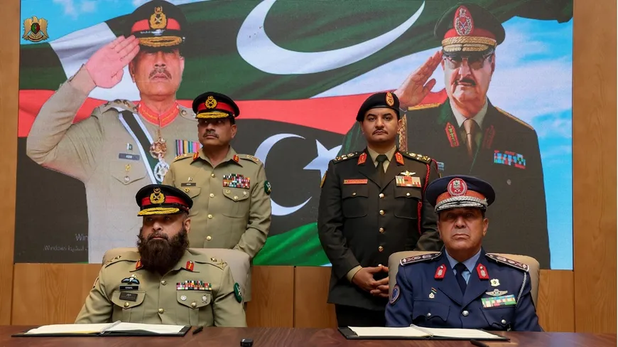 أكد الموقع أن الاتفاق تم توقيعه عقب لقاء عُقد في بنغازي، جمع رئيس أركان الجيش الباكستاني عاصم منير، بصدام حفتر، نجل خليفة حفتر ونائبه.