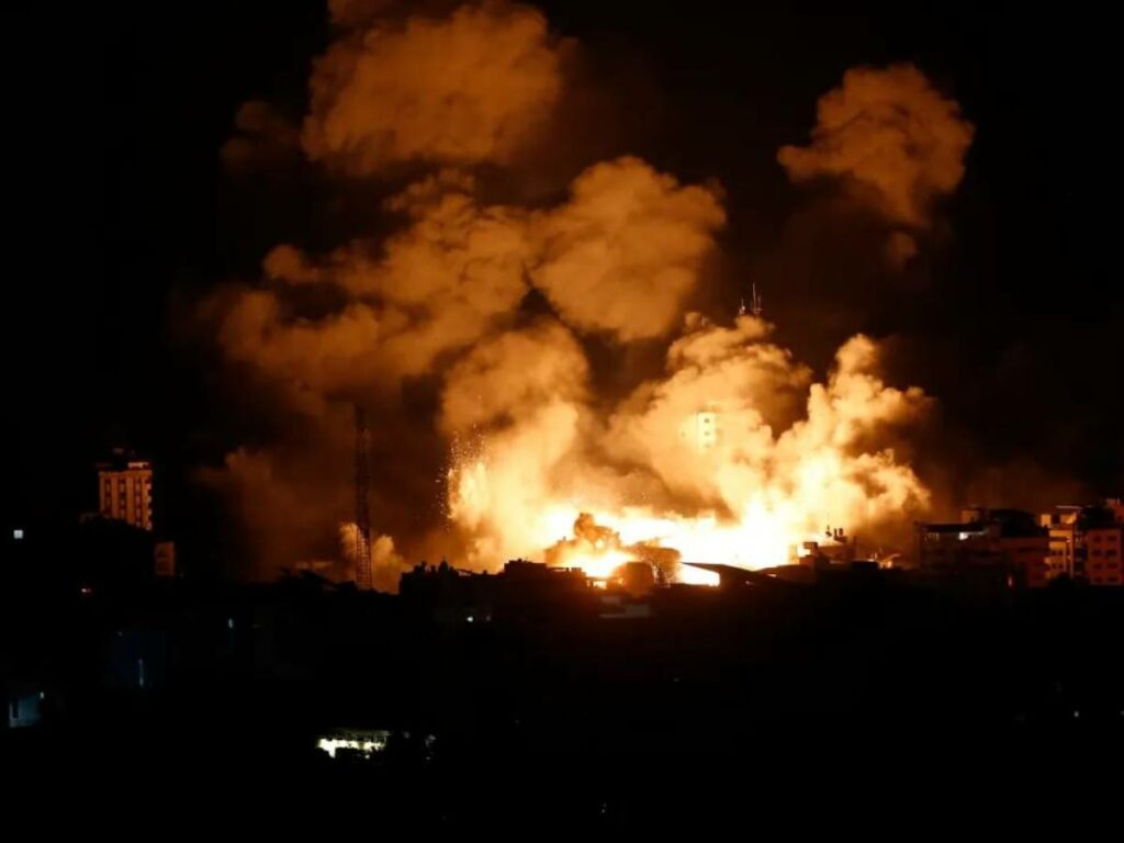 #صور| اللحظات الأولى عقب قصف طيران الاحتلال مركبة قرب النادي الأهلي، في مخيم النصيرات، وسط قطاع غزة pic.twitter.com/0cIBugoE4E