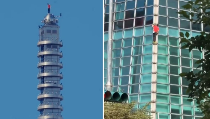 السياسي – نجح المتسلق الأميركي أليكس هونولد في تسلق مبنى تايبيه 101 في تايوان، بارتفاع يبلغ 1667 قدمًا، دون استخدام حزام أمان أو مظلة أو أي معدات سلامة.وأنهى هونولد التحدي خلال ساعة و35 دقيقة، في مغامرة جريئة نُقلت بثًا مباشرًا عبر منصة نتفليكس، وسط تفاعل واسع وإشادة بقدرته الاستثنائية على التسلق الحر.