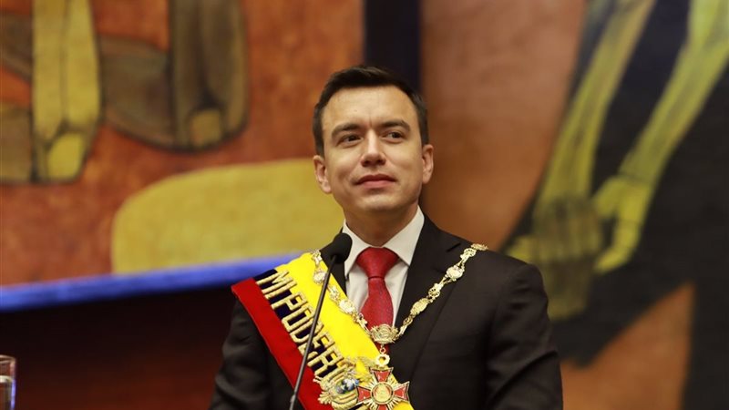 وأدى رجل الأعمال دانييل نوبوا اليمين الدستورية رئيساً للإكوادور في 24 مايو 2025 أمام رئيس الجمعية الوطنية (البرلمان) نيلز أولسن بيت، متعهداً بتكثيف الجهود الرامية إلى مكافحة عصابات المخدرات، ودعم النمو الاقتصادي.
