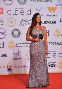 وتألقت زينة على السجادة الحمراء لحفل الافتتاح مرتدية بفستاناً فضياً لامعاً مطرزا بالكامل بالكريستالات البراقة التي أضفت عليه لمسة من الفخامة والرقي، تميز الفستان بقصة ضيقة أبرزت جمال قوامها، مع تصميم بقبة قلبية مكشوفة الأكتاف أضفى لمسة أنثوية جذابة.