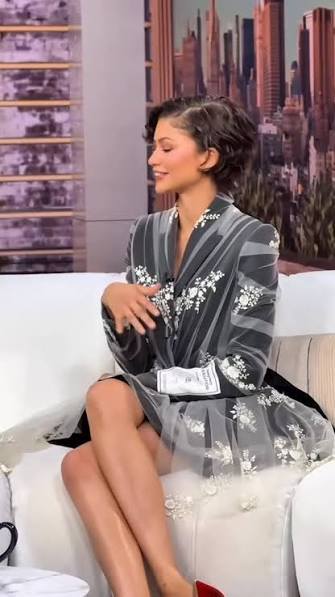 بمجرد دخولها للمقابلة، فاجأت زيندايا المشاهدين بتبديل إطلالتها بالكامل، مختارةً لوكاً آخر من Erdem، ولكنه هذه المرة كان أكثر رقة ومناسبة للتلفزيون الصباحي.