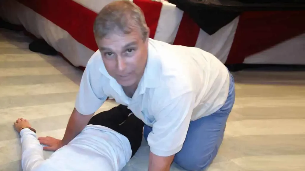 وتتضمن الملفات أيضاً صوراً تظهر أندرو، وهو زاحف على يديه وركبتيه ويلمس خصر امرأة مجهولة الهوية مستلقية على الأرض، وطُمس وجه المرأة في الصور.