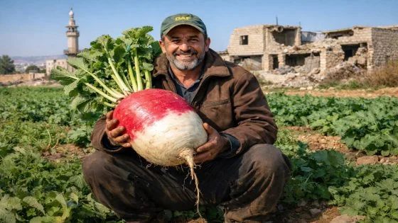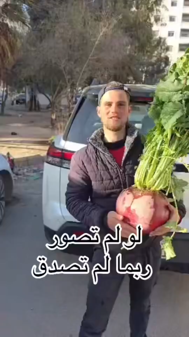 السياسي – تداول ناشطون عبر مواقع التواصل الاجتماعي مقطع فيديو يُظهر مزارعا سوريا من مدينة داريا بريف دمشق وهو يعرض رأس فجل كبير الحجم قال إن وزنه يتجاوز 10 كيلوغرامات.