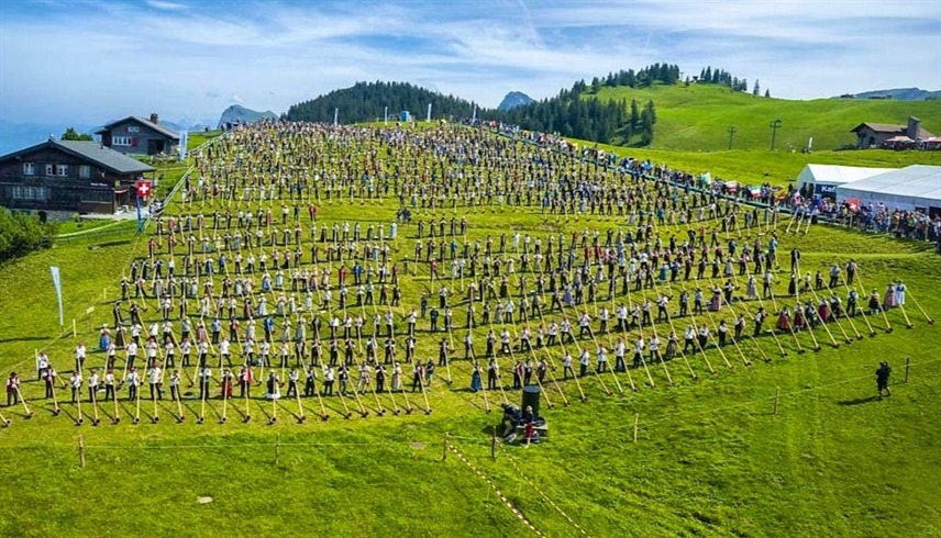 حقق أكثر من ألف عازف لآلة ” البوق الألبي” رقماً قياسياً عالمياً لأكبر تجمع لآلات “البوق الألبي” على مرج في سويسرا، وفق نقابة موسيقى اليودل السويسرية، يوم السبت.