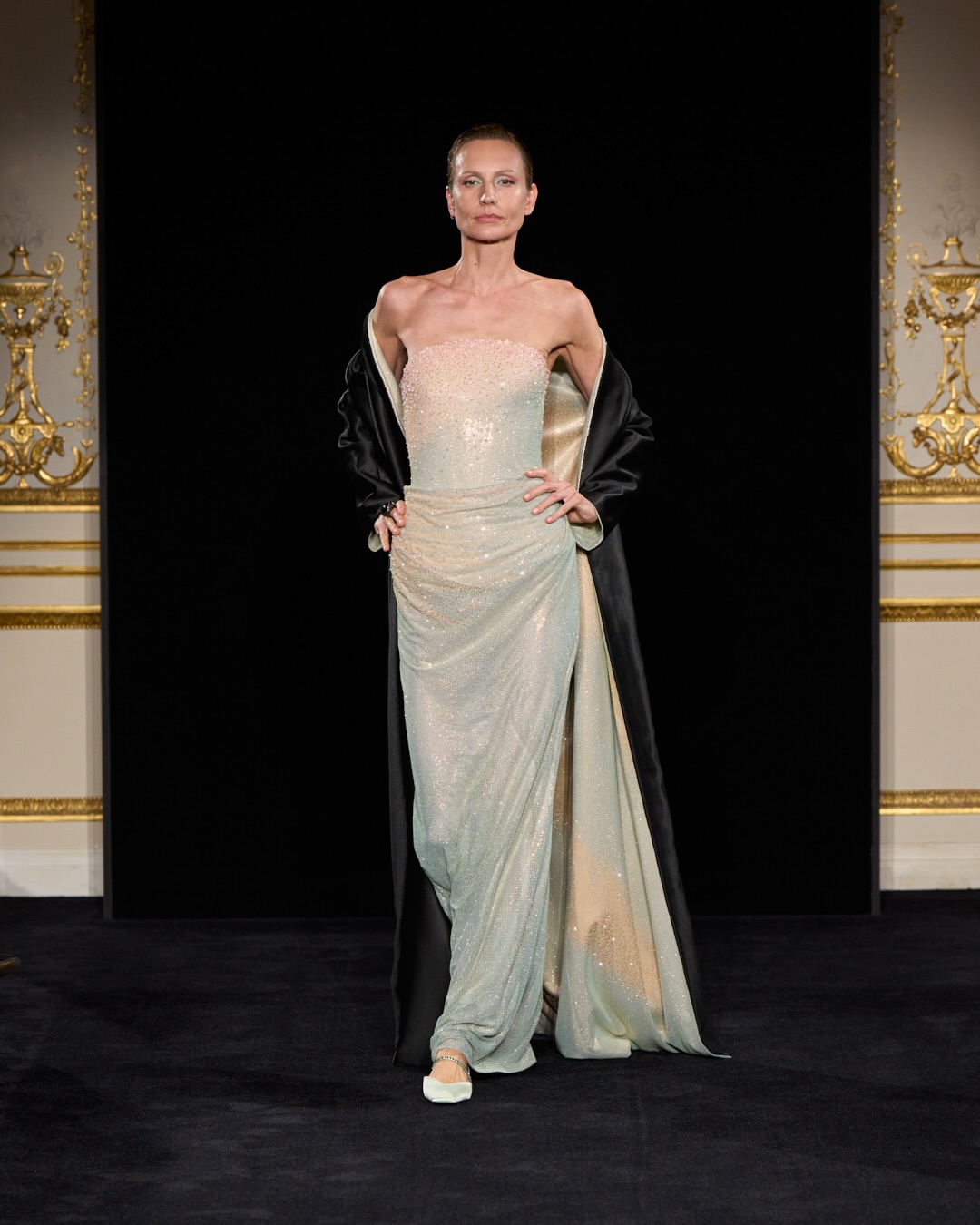فستان لم يكن مجرد ختام للعرض، بل إيماءة قوية، تستحضر الحضور الدائم وغير المرئي لمصمم ترك بصمته على الأناقةالعالمية إلى الأبد.
