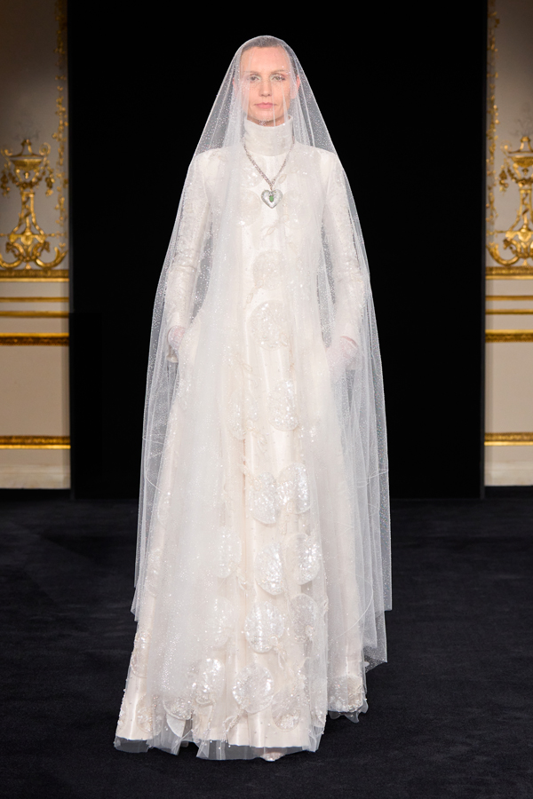 تماشياً مع طقوس الأزياء الراقية التي تعود إلى خمسينيات القرن الماضي، اختُتم العرض بنبرة حنين مؤثرة مع فستان زفاف ملكي.
