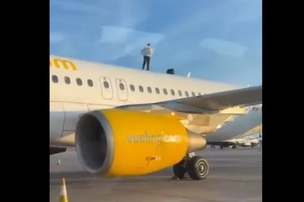 وأظهر الفيديو الشاب وهو يقف فوق سقف الطائرة، حيث بدا أنه يصرخ ويقوم بحركات استعراضية، واضعًا يديه على صدره وكأنه يرقص متحديًا العاملين في الأسفل.