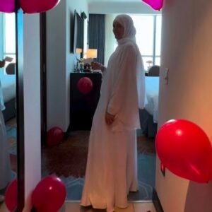 شاهد: الفنانة منى فاروق في العمرة رقم 16