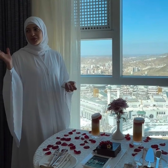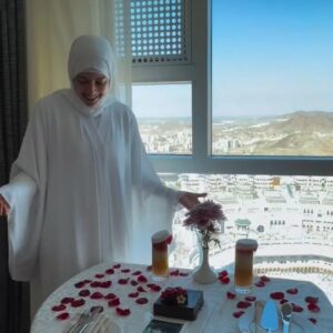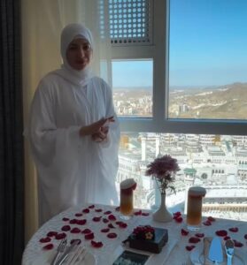 نشرت الفنانة المصرية منى فاروق صورا وهي على شرفة غرفتها في إحد الفنادق التي تطل على الكعبة المشرفة وعلقت بالقول:
