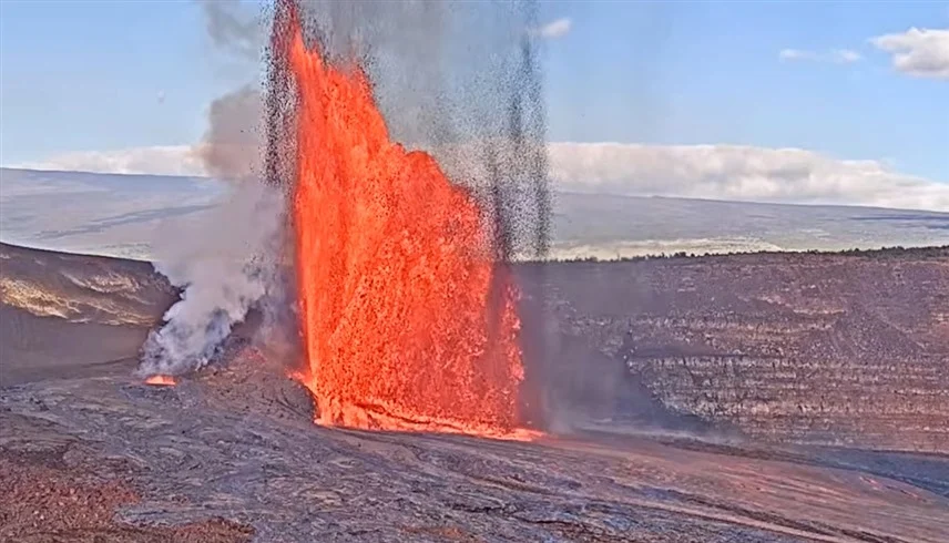 وقالت هيئة المسح الجيولوجي الأمريكية إن نوافير الحمم البركانية ارتفعت إلى أكثر من 460 متراً، بينما وصلت أعمدة الدخان والغازات إلى ارتفاع يقارب ستة كيلومترات، مع تدفّق أنهار من الحمم داخل فوهة هاليما وماونا لوا في منتزه براكين هاواي الوطني.