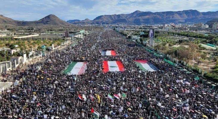 وجددت الحشود التي رفعت أعلام اليمن وفلسطين ولبنان وإيران، التأكيد على موقف اليمن الثابت والمبدئي في نصرة الشعب الفلسطيني وقضيته العالة، والتصدي للغطرسة الأمريكية والصهيونية التي تستهدف الأمة العربية والإسلامية.